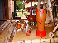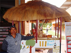Laucídio Nelson, indígena da Aldeia urbana Água Bonita, veio pela primeira vez participar da feira e trouxe uma oca de madeira recilcada. A idéia surgiu quando ele e seu filho Darlon, de seis anos, encontraram uma pilha de tábuas de madeira jogadas no lixo. A oca de madeira reciclada, capim e outros materiais, está concluída após três meses de trabalho e apresenta um pouco da origem do povo indígena, resgatando a tradição que é passada de pai para filho.
