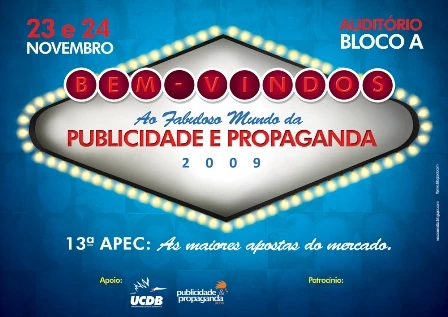 Nos próximos dias 23 e 24 acontece a 13° Apresentação de Projetos Experimentais de Comunicação Social (APEC),em queacadêmicos do último semestre do curso de Publicidade e Propaganda da Universidade Católica Dom Bosco (UCDB) apresentam seus Trabalhos de Conclusão de Curso (TCC). O evento acontece no anfiteatro do bloco A, das 7h30 às 11h, e é aberto a toda comunidade.