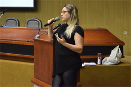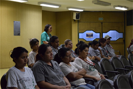 A abertura do evento foi feita pela Pastoral e, logo após, a professora Dra. Daniele Decanine palestrou sobre o tema “Saúde, trabalho e doença – Prevenção de riscos”. Ela falou sobre os riscos, segurança no trabalho e as precauções padrões que devem ser tomadas. “Acho importante falar sobre os riscos, quais são as atitudes que os funcionários devem tomar mediante a alguma situação que eles possam vir a encontrar, o que é normatizado e o que se deve ocorrer dentro de uma empresa. Aqui na UCDB, a gente trabalha com muito material biológico, então acho importante falar sobre isso com eles”, disse a professora.