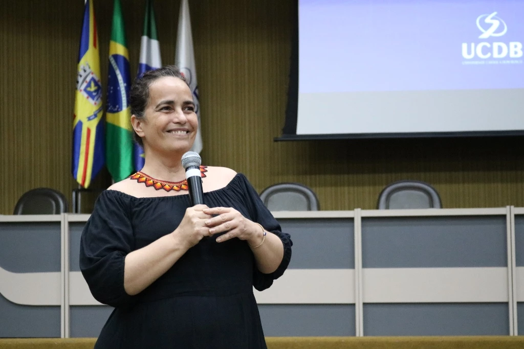 A jornalista Claudia Gaigher foi a palestrante convidada para a Reunião Geral do Programa Institucional de Bolsas de Iniciação Científica (Pibic) da Universidade Católica Dom Bosco (UCDB), promovida ontem (28). O tema da apresentação foi “Comunicação científica” e a profissional compartilhou um pouco de sua ampla experiência como repórter da TV Globo.