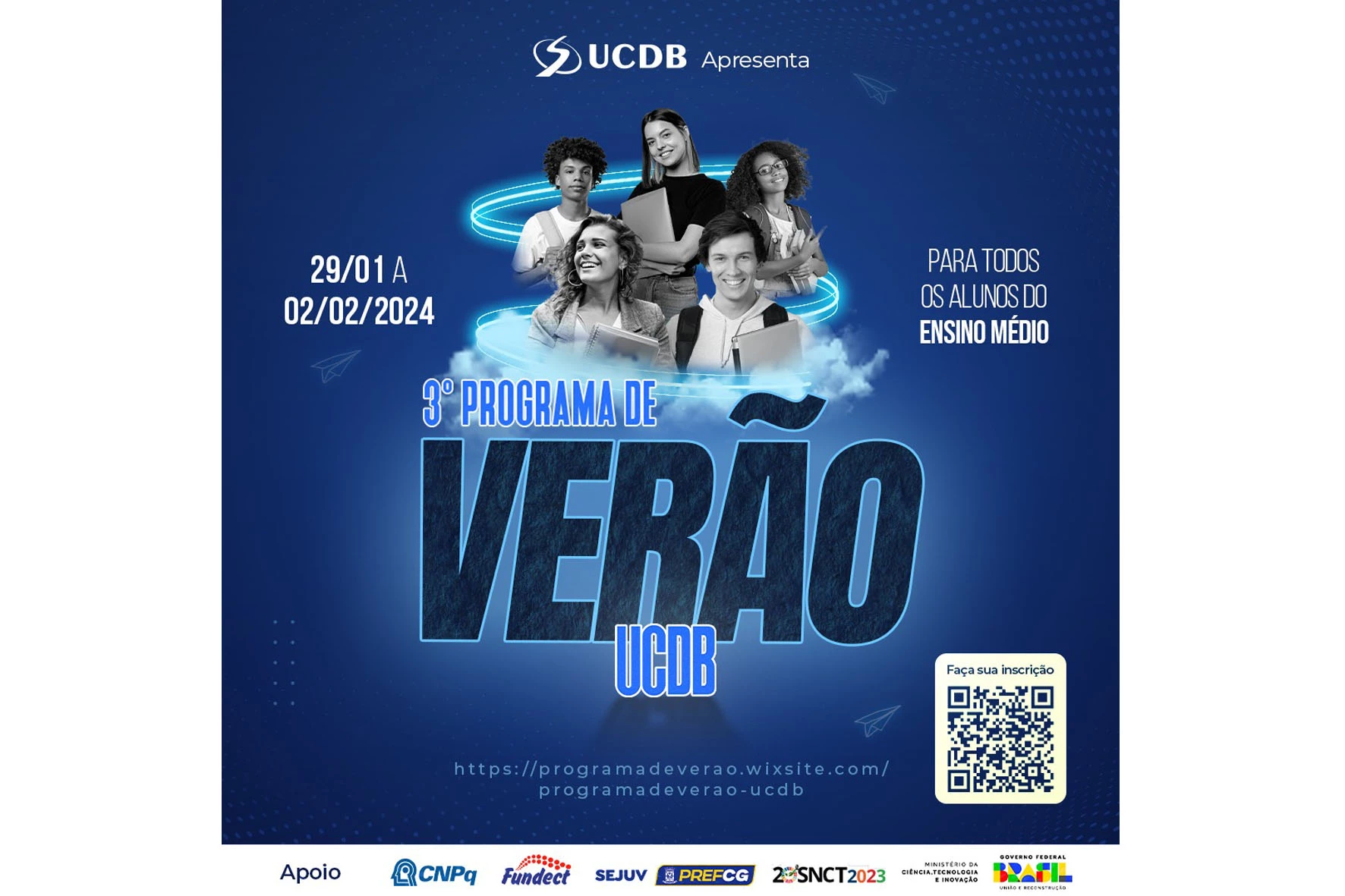 A Universidade Católica Dom Bosco, por meio do Programa Institucional de Bolsas de Iniciação Científica Júnior (Pibic Jr), continua com inscrições abertas para a terceira edição do Programa de Verão UCDB 2024, que deve ser feita clicando aqui até o dia 22 de janeiro de 2024. As vagas são limitadas. Podem participar estudantes do 9º ano do ensino fundamental II e 1º, 2º e 3º ano do ensino médio.