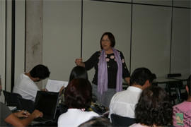 A palestra foi ministrada pela integrante do corpo docente da Unisinos, Dra. Eli Terezinha Henn Fabris. A conferencista é licenciada em Pedagogia, doutora e mestre em Educação pela Universidade Federal do Rio Grande do Sul (UFRGS).