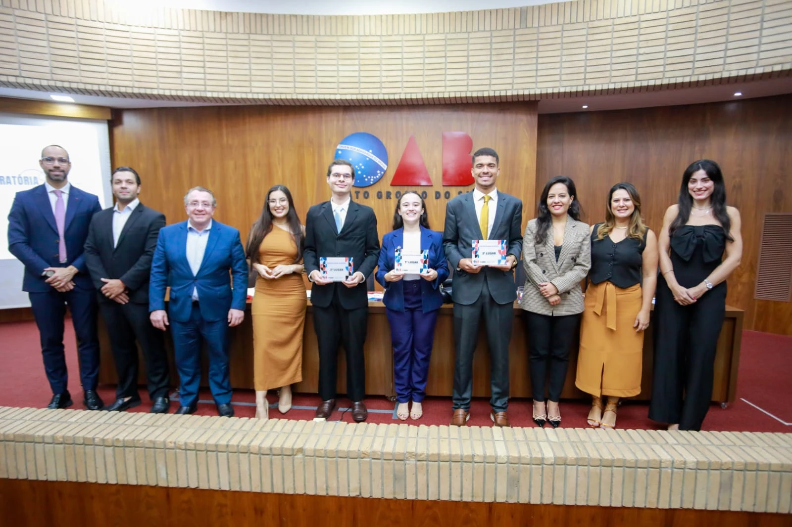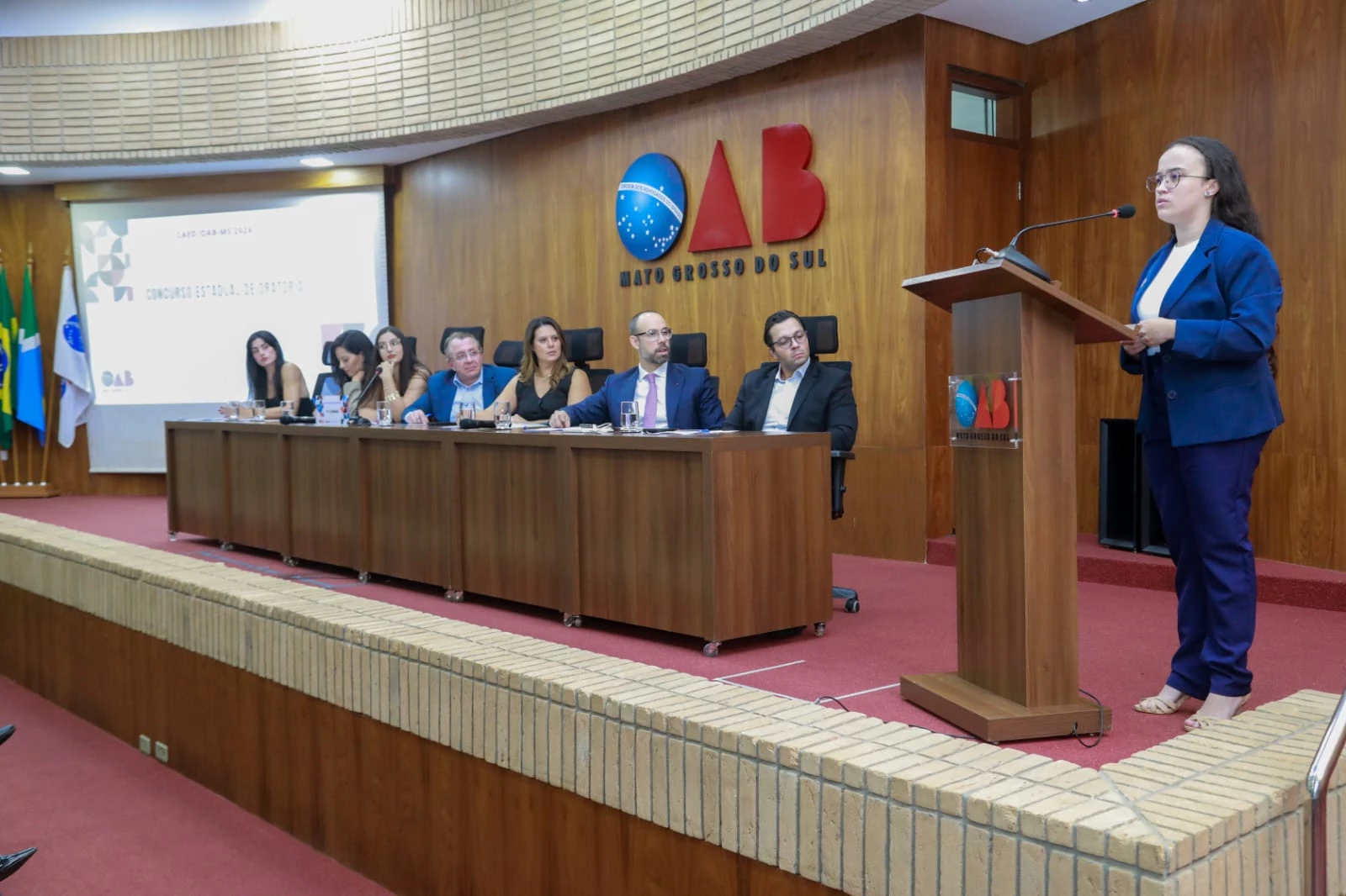 A acadêmica Maria Letícia Costa da Rocha, do 6º semestre do curso de Direito da Universidade Católica Dom Bosco (UCDB) conquistou na sexta-feira (4) a primeira colocação no Concurso Estadual de Oratória 2024, promovido pela Comissão de Acadêmicos e Estagiários de Direito da Ordem dos Advogados do Brasil seccional Mato Grosso do Sul (OAB/MS). Gabriel Michelon Pinto Duarte (UFMS) ficou em segundo e Ronaldo Júnior Castro Chaves (Unigran) em terceiro lugar. Ao todo foram nove participantes.