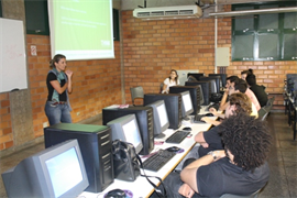 Na ocasião, a publicitária transmitiu aos acadêmicos suas experiências ao longo de mais de 15 anos de profissão. Atualmente trabalhando para a THINK Service Design, Adriana abordou o estágio e apresentou trabalhos produzidos recentemente.