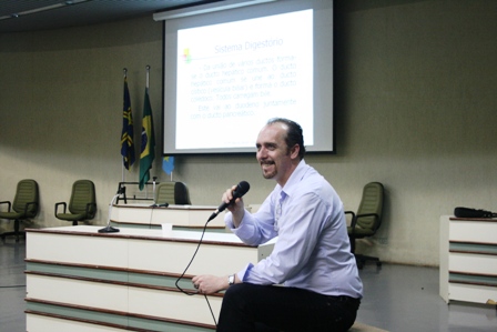 Acadêmicos dos cursos de Fisioterapia, Enfermagem, Nutrição e Farmácia da Universidade Católica Dom Bosco (UCDB) participaram na manhã de ontem de uma aula conjunta da matéria “Corpo Humano II”, ministrada pelo professor Jorge Barros. Essa foi a primeira de três aulas que revisam o conteúdo ministrado para os alunos.