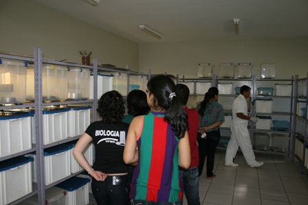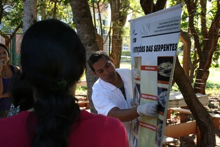 Em uma visita técnica ao Biotério da Universidade Católica Dom Bosco (UCDB), realizada na sexta-feira (28), cerca de 30 acadêmicos do curso de Biologia da Universidade Federal de Mato Grosso do Sul (UFMS/Aquidauana) tiveram a oportunidade de presenciar e tirar dúvidas sobre as formas de vida de serpentes e répteis.