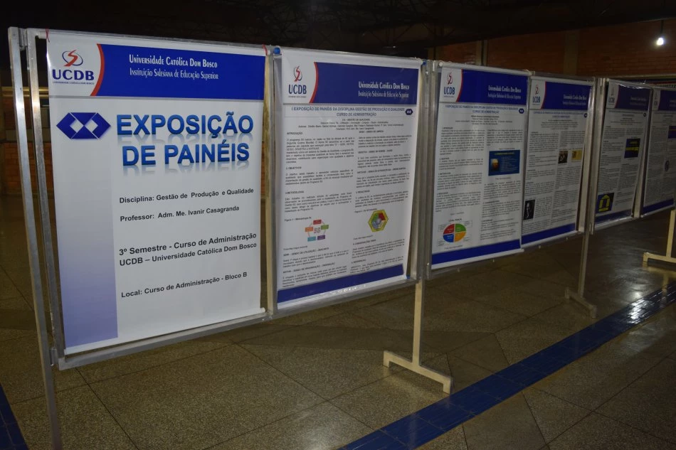 Está aberta, na parte superior do bloco B da Universidade Católica Dom Bosco (UCDB), a exposição de banners feitos por acadêmicos do 3° semestre A e B do curso de Administração, na disciplina Gestão de Produção e Qualidade.