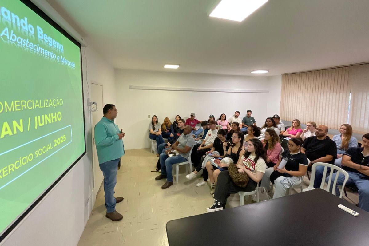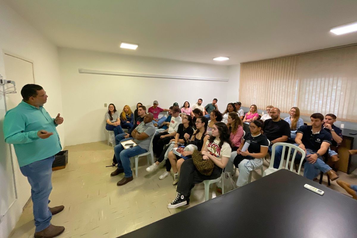 Após o passeio pelo complexo das Centrais, os estudantes assistiram a uma palestra do diretor de Abastecimento e Mercado da Ceasa/MS, Fernando Begena.