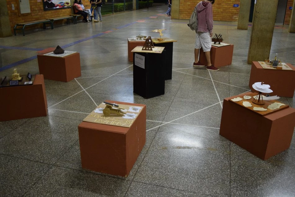Os trabalhos foram releituras de obras de Leonardo da Vinci, como “Barca de Palas”, “Ponte Giratória”, “Canhão de Canos”, “Auto Propelido”, entre outros, com o objetivo de trazer a realidade que vem sendo estudada em sala de aula, fazendo com que os acadêmicos tenham a percepção de como foi montada. Os materiais usados eram livres, porém era essencial que a madeira fosse um dos itens da lista na hora da construção.