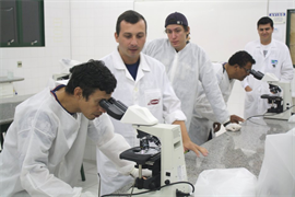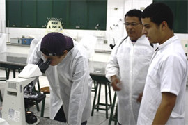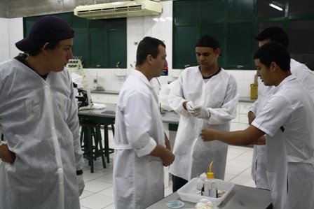 Acadêmicos do 6º semestre noturno do curso de Ciências Biológicas da Universidade Católica Dom Bosco (UCDB) receberam, na quarta-feira, nos laboratórios do Bloco Biossaúde, a visita de alunos de Educação para Jovens e Adultos (EJA) do Colégio Salesiano Dom Bosco. Durante o encontro, os estudantes da UCDB realizaram várias atividades envolvendo células e tecidos.