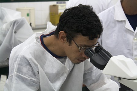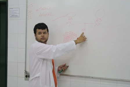 Parte das atividades obrigatórias do estágio supervisionado dos acadêmicos, a visita foi dividida em quatro grupos que participaram das práticas de raspagem de mucosa bucal e teste de tipagem sanguínea, visualizando por microscópio as estruturas celulares. Os alunos também puderam ver a estrutura da raiz da cebola e do sêmen.