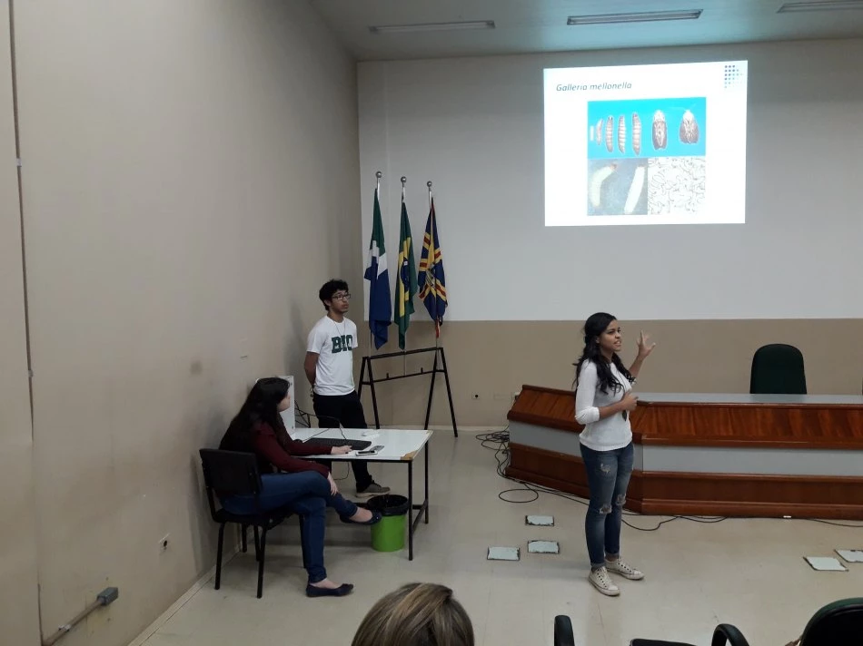 Os acadêmicos Kathyucia Bittencourt, Bárbara Martins e Odaias Pereira compartilharam com os colegas a experiência de participar de cursos na USP de Ribeirão Preto e Unesp de Araçatuba, durante o período de férias de julho. “Cada um escolheu um curso diferente e isso foi muito importante para conhecermos áreas diferentes, linhas de pesquisa, laboratórios e ter contato com os pesquisadores e professores. Foi enriquecedor. E pudemos perceber que a UCDB, apesar do curso ser novo, não deve nada para nenhum desses grandes centros: temos infraestrutura, uma grade abrangente e todas as condições para desenvolvermos a graduação e a pesquisa”, avaliaram.