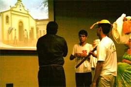 Oprofessor do curso de Ciências Contábeis da Universidade Católica Dom Bosco (UCDB),Elvézio Scampini, avaliou, na última quinta-feira (19), o primeiro grupo, dentro do projeto Teatro de Matemática Aplicada. A apresentação aconteceu no anfiteatro do bloco B.