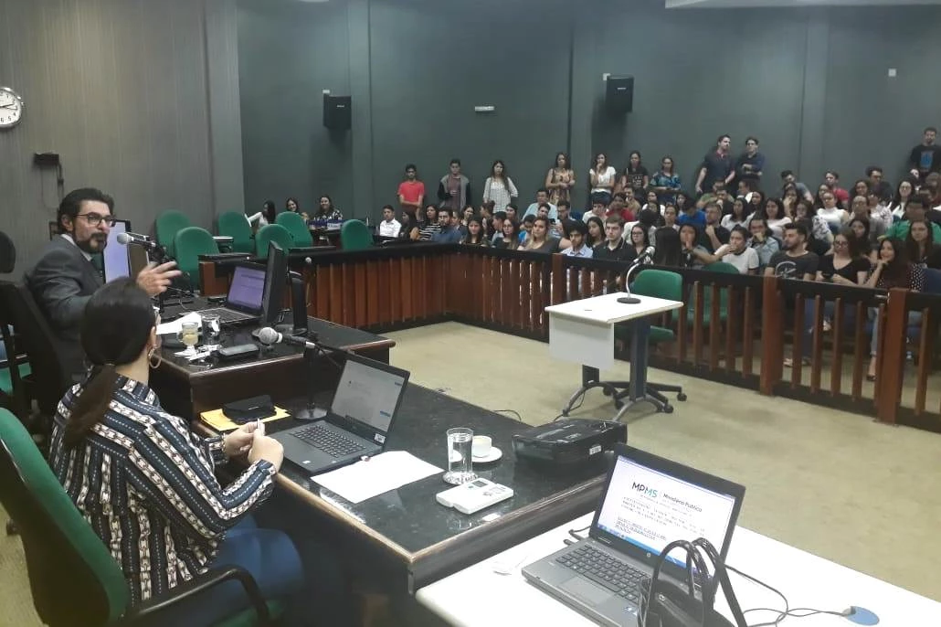 Acadêmicos do 8° semestre do curso de Direito da Universidade Católica Dom Bosco (UCDB) acompanharam, na tarde dessa segunda-feira (19), uma audiência de instrução e julgamento da 1ª Vara do Tribunal do Júri de Campo Grande. Para acomodar melhor os acadêmicos, o juiz Carlos Alberto Garcete, realizou a audiência no Plenário do Júri, onde são realizados os júris populares.