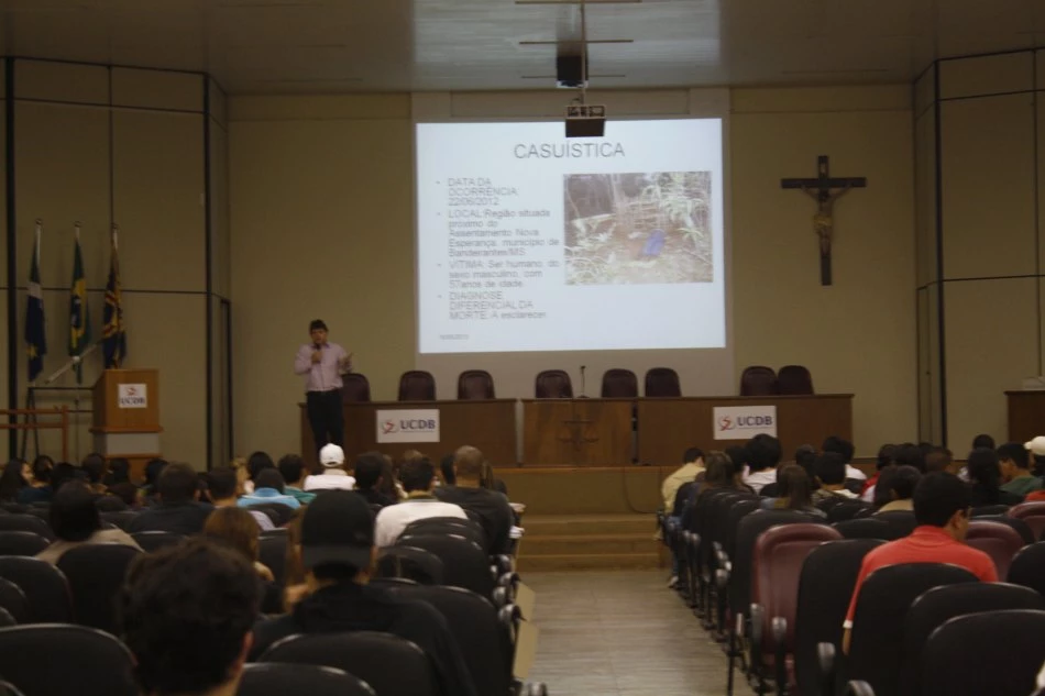 Ontem (16), no primeiro dia dos eventos, os alunos reuniram-se no anfiteatro do bloco C para debater temas polêmicos e aprender como as novas tecnologias influenciam nas investigações criminais atuais.