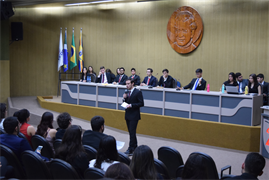 Ela ressalta que os acadêmicos do sexto e do sétimo semestre participam das apresentações como orientadores e tem o papel de escolher os que mais se destacarem em todas as apresentadores do segundo semestre deste ano para que participem do Tribunal de Argumentação na Acolhida dos calouros de Direito em 2019.