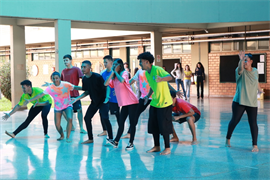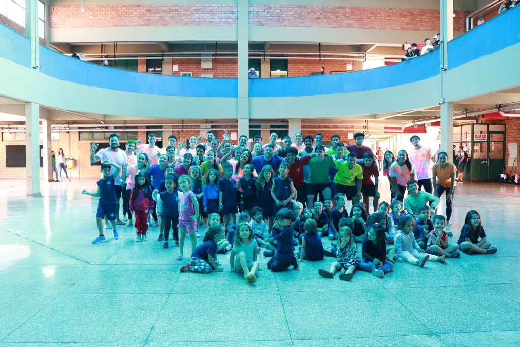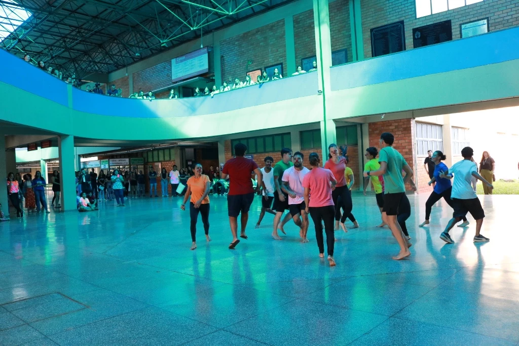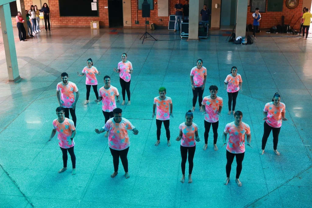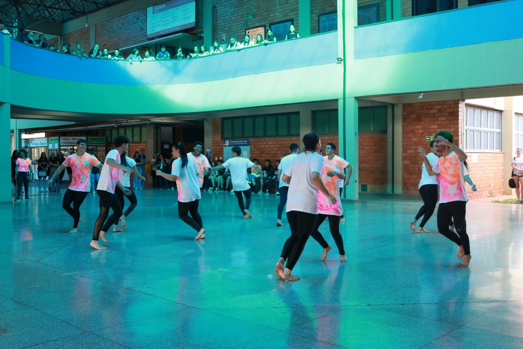 A primeira apresentação reuniu 47 acadêmicos, que fizeram a coreografia do musical “O grande show”, sob a direção e orientação da professora. Em seguida, divididos em três grupos, apresentaram danças coreografadas por eles próprios.