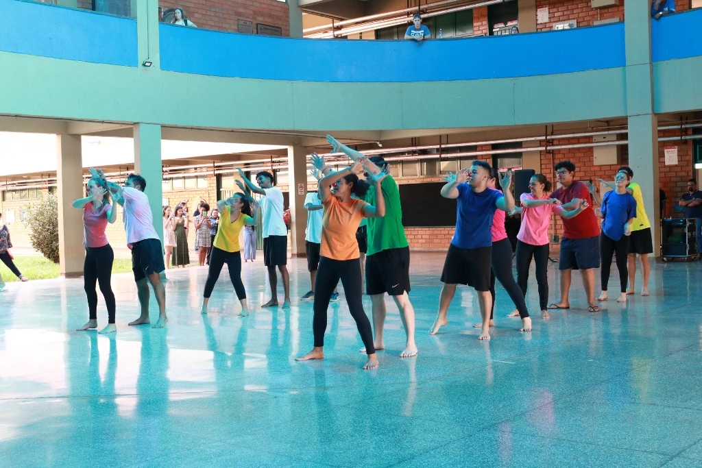 Quatro apresentações executadas por acadêmicos de Educação Física (Licenciatura e Bacharelado) da Universidade Católica Dom Bosco marcaram o encerramento das disciplinas “Fundamentos metodológicos da ginástica geral” e “Expressão corporal e formação rítmica do movimento”, ministradas pela professora Ariane Silva para o 1º semestre.