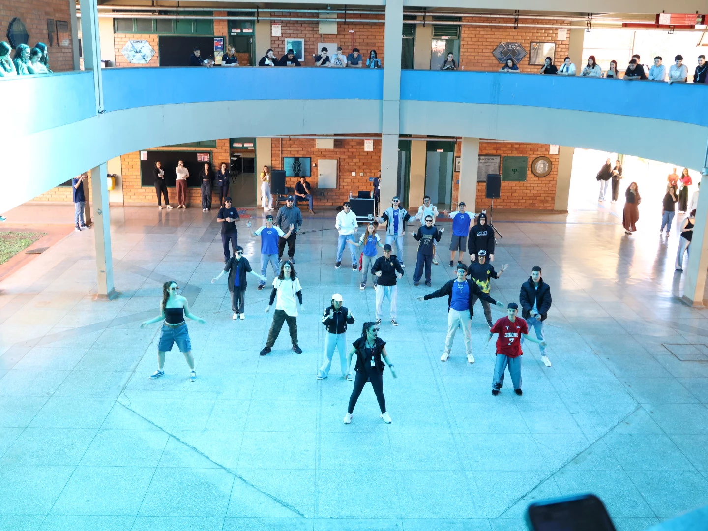 Ao som de Uptown Funk (Mark Ronson), a apresentação chamou a atenção de alunos de outros cursos, colaboradores e docentes que passavam pelo local e pararam para prestigiar e aplaudir.