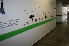 As estudantes decoraram o setor com adesivos nas paredes que lembram temáticas infantis deixando o ambiente mais colorido e alegre e perceberam que a mudança não só melhorou a recuperação da cerca de 30 crianças internadas como também aumentou a auto estima dos familiares e o rendimento dos funcionários.