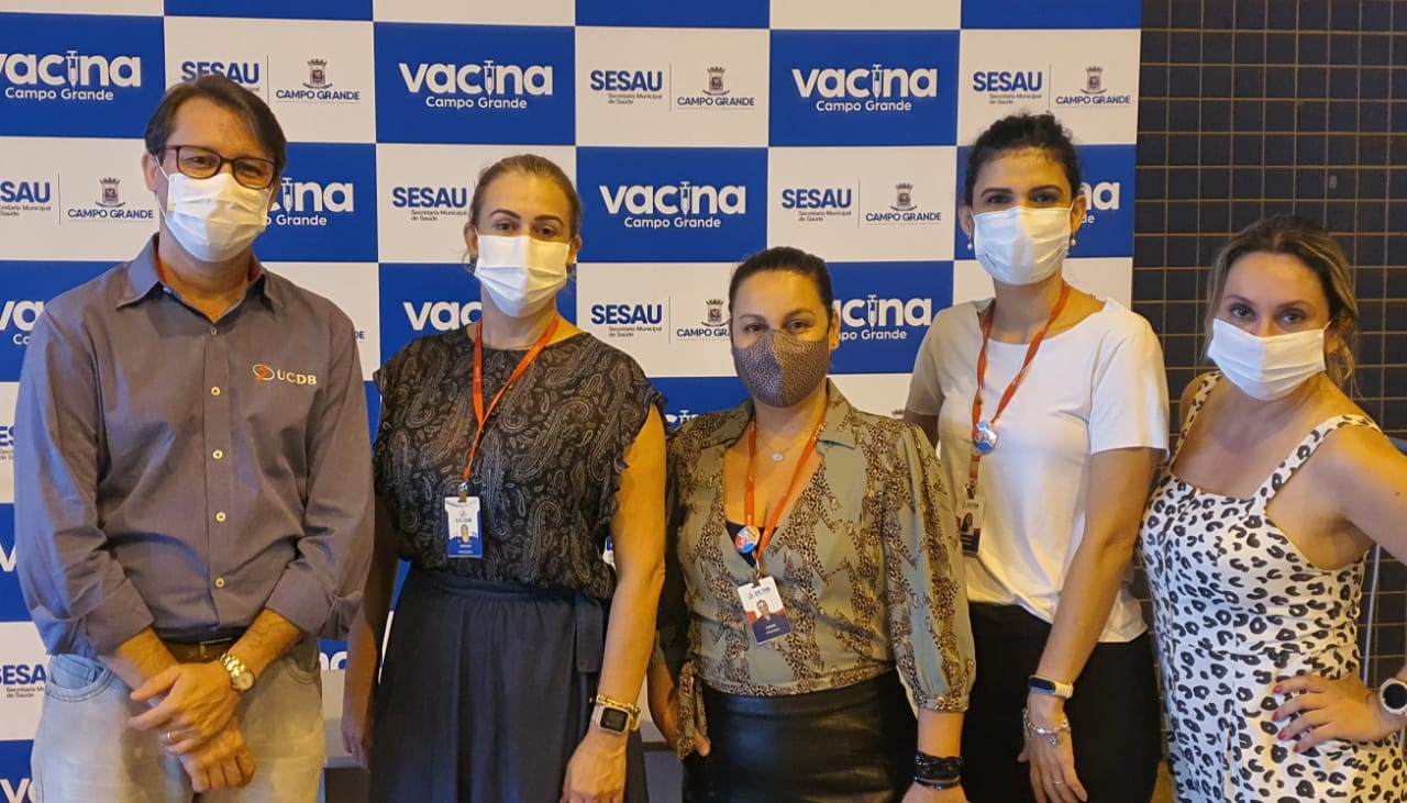 No lançamento do Drive-thru, o Pró-Reitor de Pesquisa e Pós-graduação, Dr. Cristiano Marcelo Espinola Carvalho, e as professoras Débora, Úrsula Vilela Andrade, Karine Ferreira da Costa e Kelly Cristina Vilena estiveram presentes representando a UCDB.