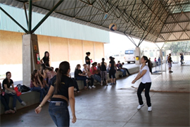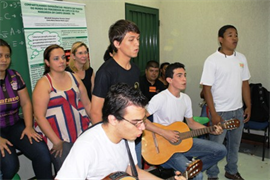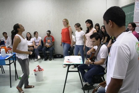 A acadêmica Marina Baptista regeu um coral que conta com a participação de acadêmicos de diferentes cursos da UCDB. Ela explicou que a música também faz parte da terapia. “É a livre expressão do sentimento. Quando ouvimos música, o sentimento é passado pra nós. Quando cantamos colocamos pra fora nossos sentimentos”, explicou.