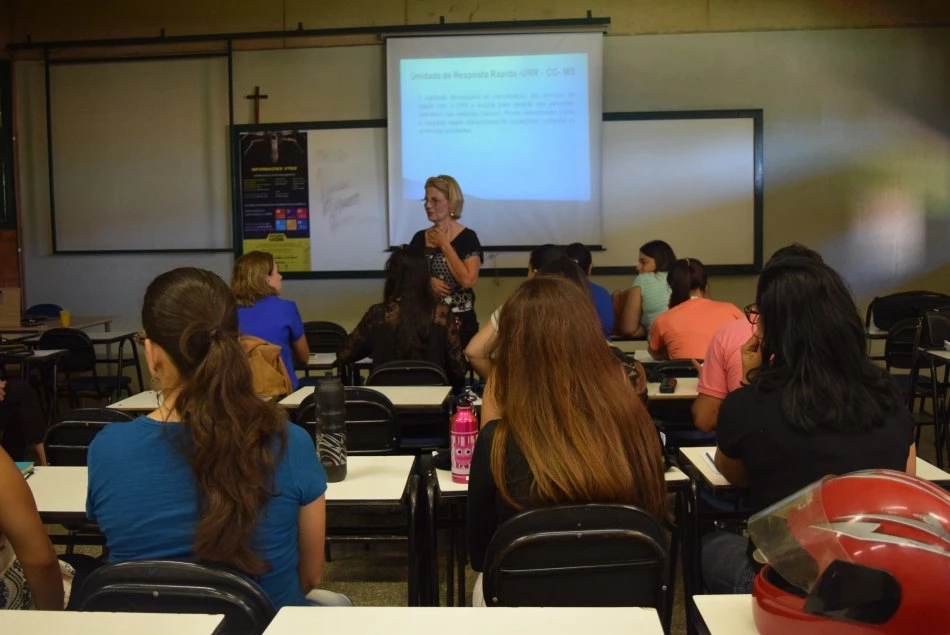 Os acadêmicos de Enfermagem da Universidade Católica Dom Bosco (UCDB) participaram, na quarta-feira (15) de uma palestra ministrada pela coordenadora de vigilância epidemiológica do Município, Mariah Barros, sobre a Unidade de Resposta Rápida (URR).