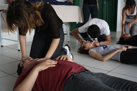 Os acadêmicos que cursam a disciplina Suporte Básico de Vida tiveram aulas teóricas e práticas. Segundo ela, a ideia surgiu a partir do momento em que houve mudanças nas diretrizes do ATLS.