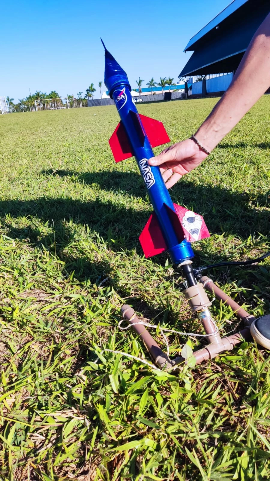 O foguete de garrafa pet foi desenvolvido por sete grupos de acadêmicos de engenharias do primeiro semestre, na disciplina de ‘Mecânica da partícula’, totalizando 21 modelos de todas as turmas. “Meu objetivo é fazer com que criem uma interação maior entre eles, já que estão chegando na Universidade, para que saibam trabalhar em grupo, pois é uma habilidade importante nas engenharias, e dentro dos conceitos físicos, que eles relacionem o experimento com as Leis de Newton e que façam todos os cálculos do lançamento utilizando o conceito de lançamento oblíquo, além de trabalhar a aerodinâmica do foguete”, explica o professor Hilton Junior.