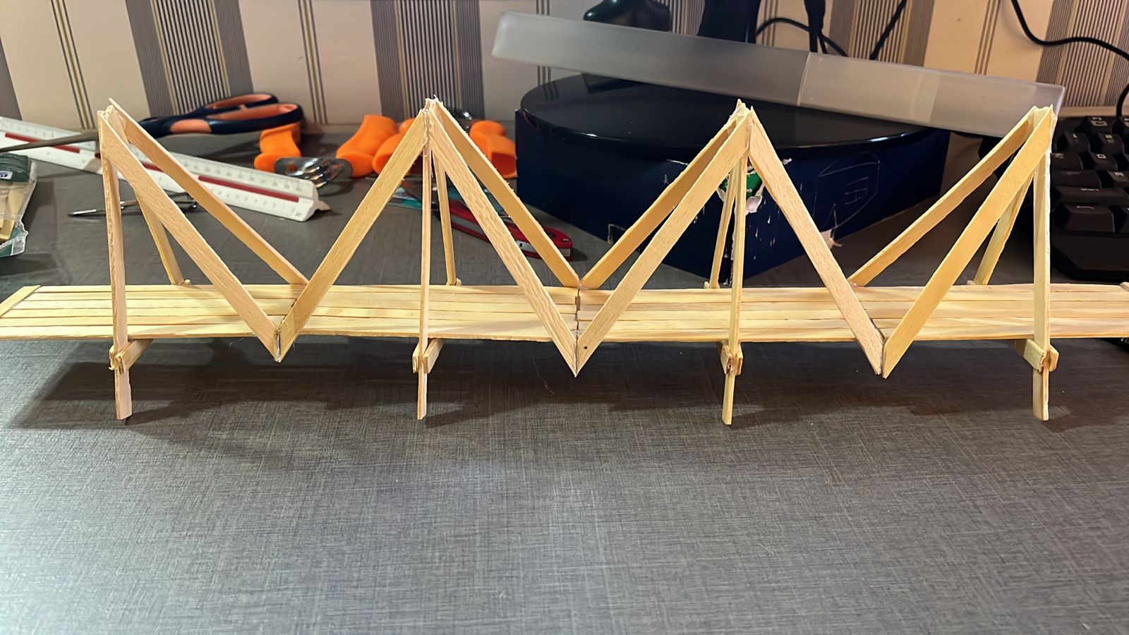 Já os acadêmicos do 3º semestre, dentro da disciplina ‘Hidro, Termo e Ondas’, do mesmo professor, construíram maquetes de pontes. “Para essa turma foi solicitado a produção de uma maquete de uma ponte e assim simularmos um terremoto com um mecanismo de vibração, para entenderem como as estruturas se comportam quando sofrem um terremoto, e com isso entenderem que o fenômeno ressonância pode danificar a estrutura”, finaliza.