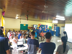 Acadêmicos do 6° semestre do curso de Engenharia Sanitária Ambiental (ESA), em parceria com os extensionistas do projeto de extensão Horta Escola, da Universidade Católica Dom Bosco (UCDB), realizaram oficina de compostagem para os professores do Centro de Referência de Assistência Social (CRAS) Valéria Lopes da Silva, para moradores do bairro Vila Popular e indígenas, de etnia Terena.