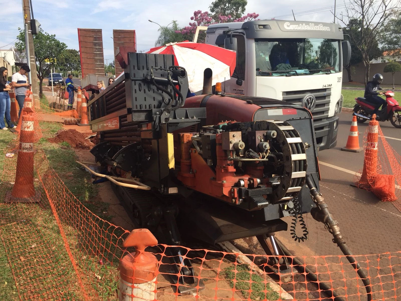 Conforme o docente, a implantação de rede pelo método não destrutivo trata-se de uma alternativa ao sistema convencional cuja vantagem principal consiste na necessidade menor de atividades de corte de pavimentação, de escavação e reaterro das valas. A desvantagem, porém, é a demanda por equipamento e equipe técnica especializada na execução. O local visitado é para implantação da rede de gás e está localizado no Bairro Rita Vieira.