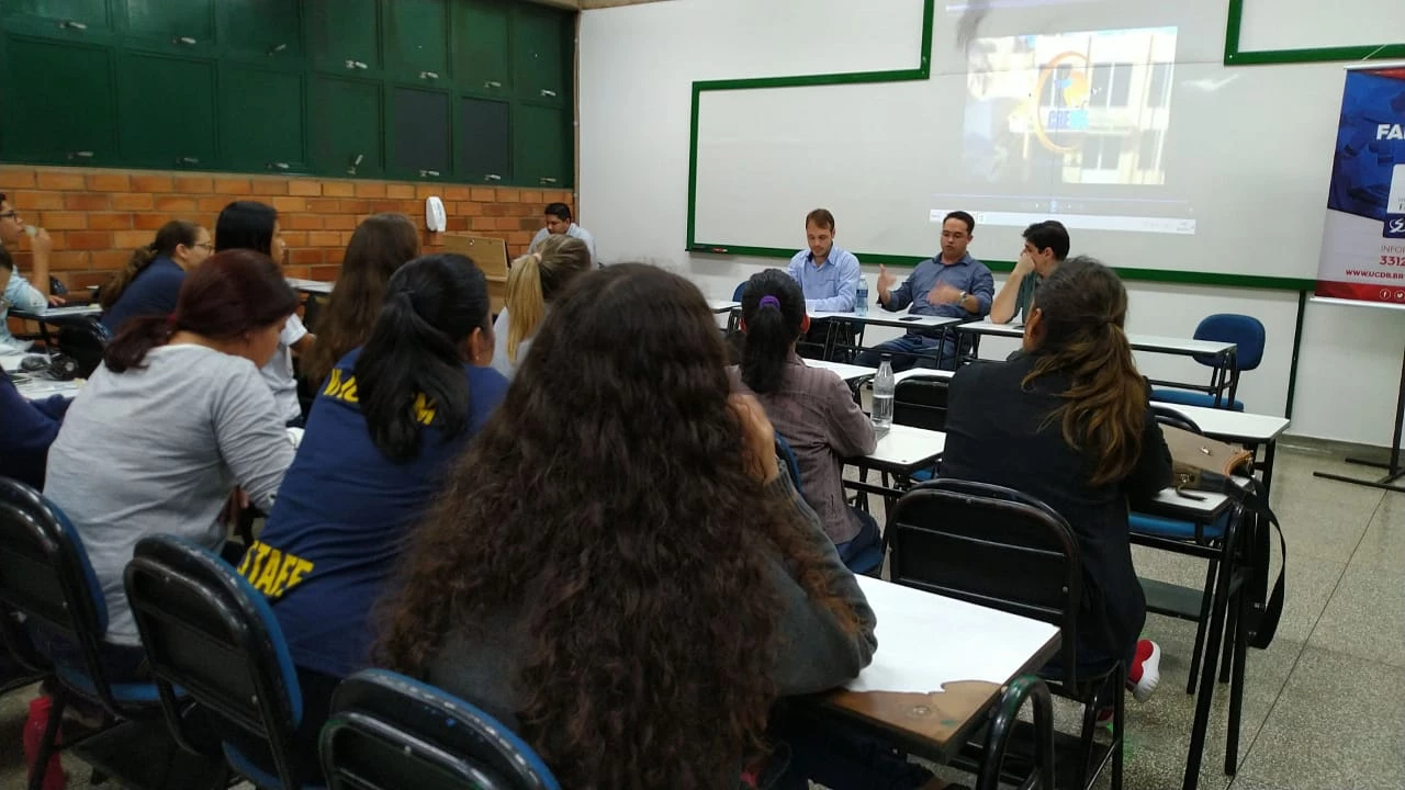 Acadêmicos do curso de Farmácia da Universidade Católica Dom Bosco (UCDB), participaram na quarta-feira (20) de mesa-redonda organizada pelos representantes do Conselho Regional de Farmácia Júnior (CRF/JR) e pela coordenadora do curso, professora Marla Ribeiro Arima.