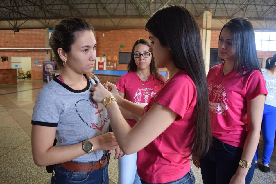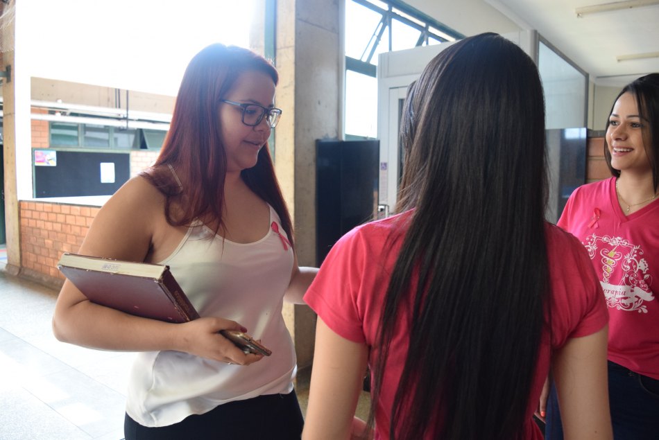 Acadêmicos do 8º semestre do curso de Fisioterapia da Universidade Católica Dom Bosco (UCDB) promoveram, no intervalo de sexta-feira (21) pela manhã, campanha de conscientização da comunidade acadêmica levando informação sobre a prevenção e o diagnóstico precoce do câncer de mama, distribuindo ainda laços rosas confeccionados por eles.