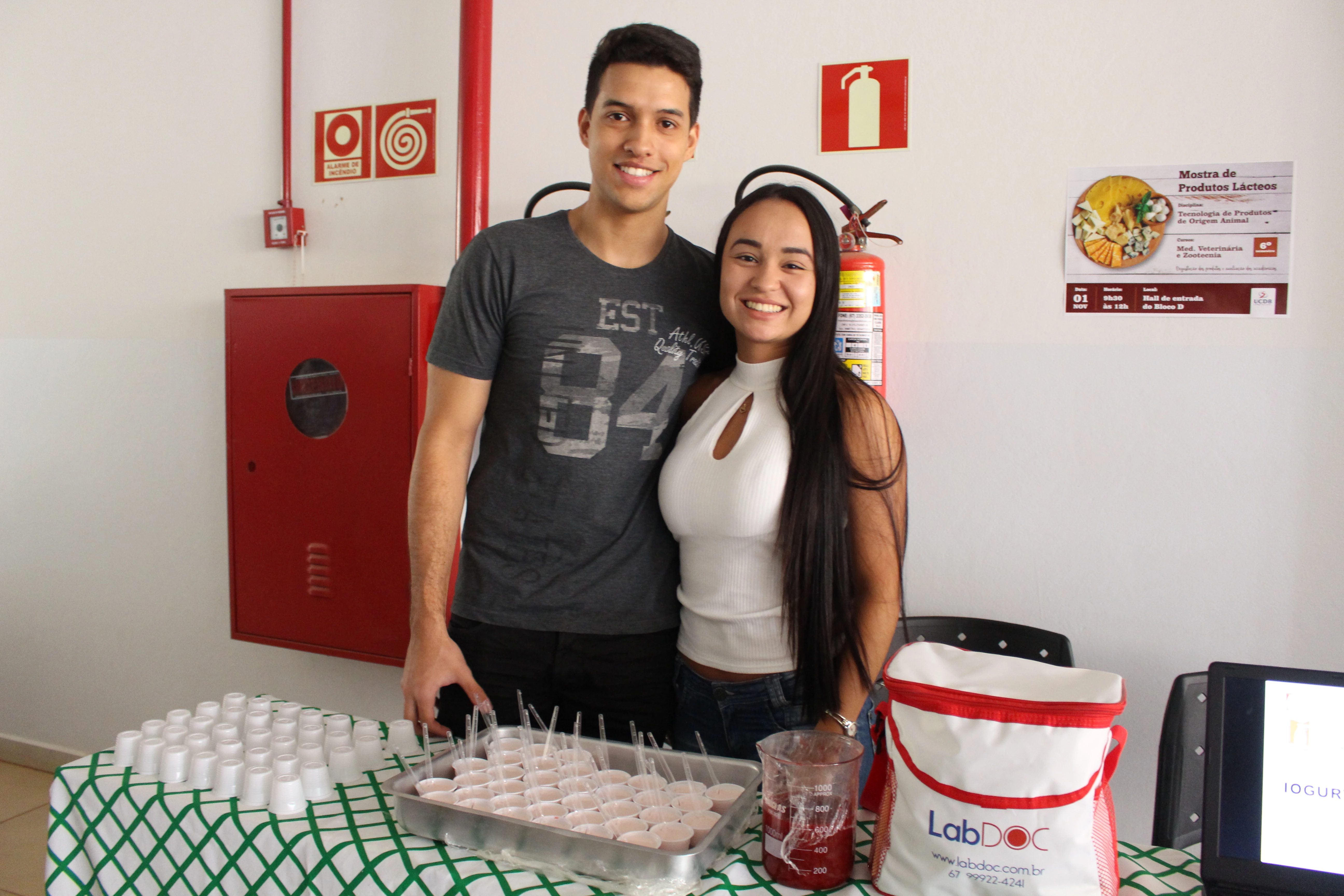 Acadêmicos de Medicina Veterinária e Zootecnia da Universidade Católica Dom Bosco (UCDB) realizaram na quinta-feira (1º) mostra de produtos lácteos desenvolvidos por eles durante as aulas da disciplina “Tecnologia de produtos de origem animal”, disciplina que ensina sobre o controle de qualidade desses produtos. Em setembro, foi feita a primeira etapa em que foram produzidos vários tipos de alimentos da indústria da carne como embutidos frescais e fermentados, defumados e desidratados.