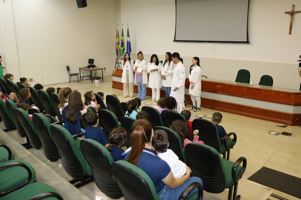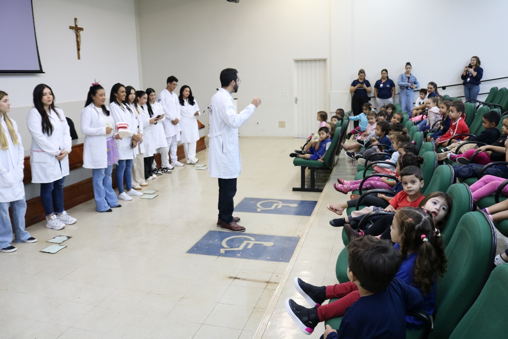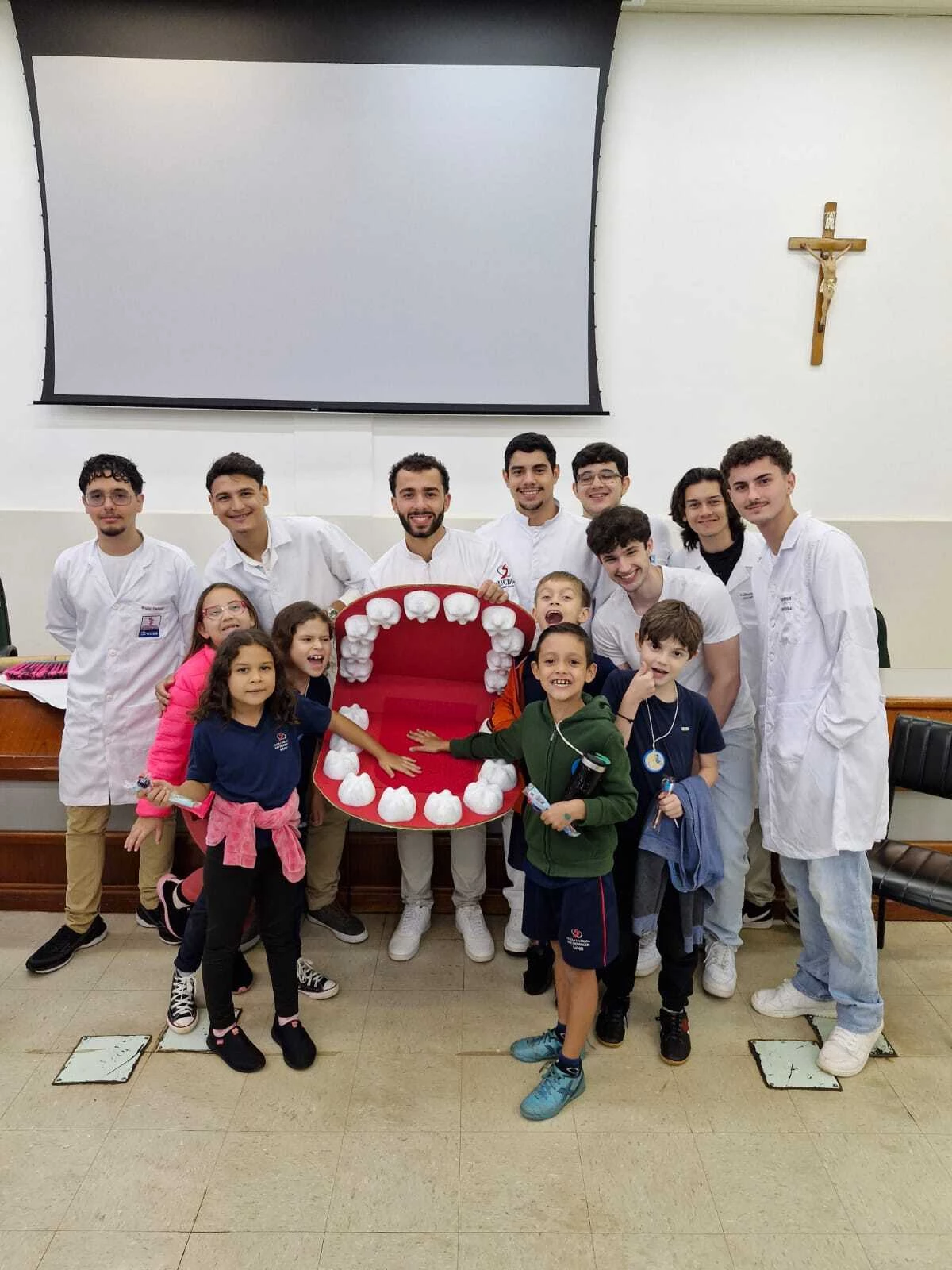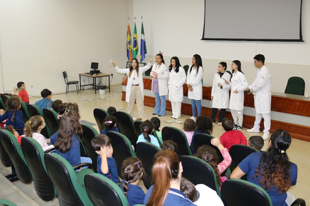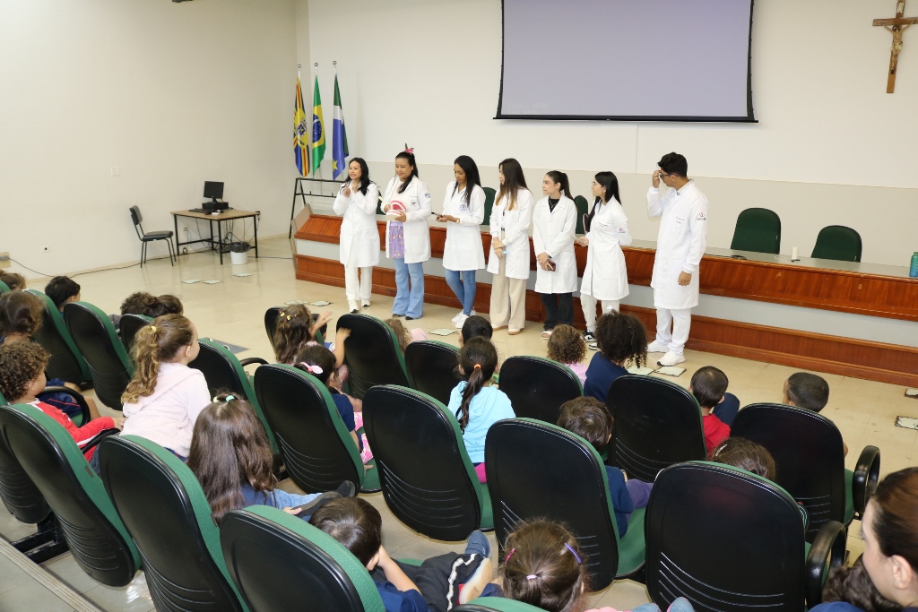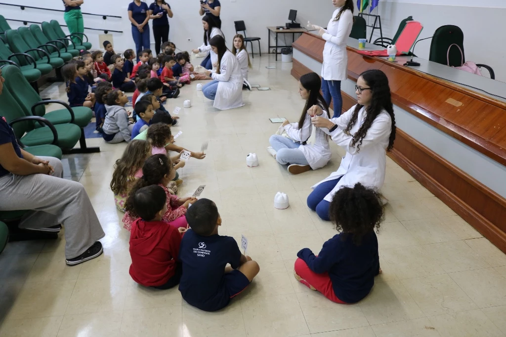 De forma lúdica e bem divertida, os estudantes explicaram a maneira correta da escovação e como passar o fio dental para evitar caries. “O objetivo é mostrar para o público infantil como tomar os melhores cuidados para a higiene bucal e para a saúde de forma geral”, destacou o coordenador do curso, professor Leandro Tortosa.