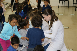 Acadêmicos de Odonto da UCDB orientam crianças sobre saúde bucal