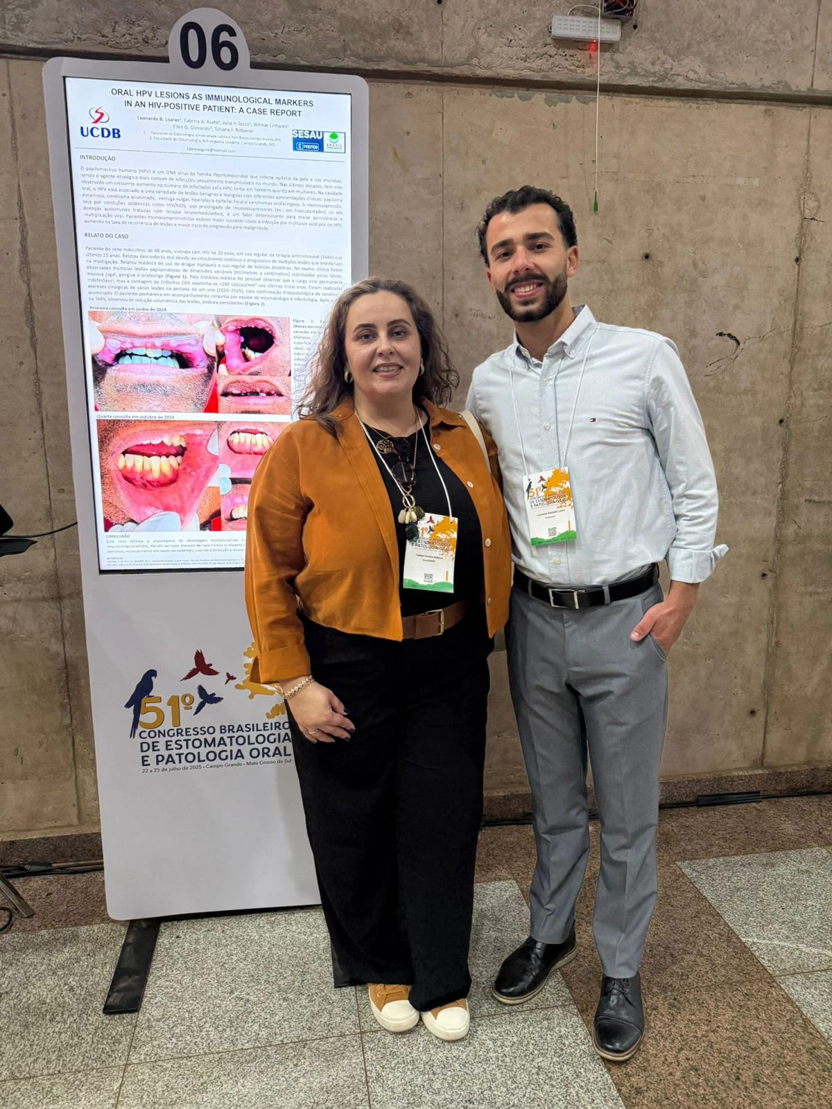 Os acadêmicos, Fabrina Aguni Asato e Leonardo Batistoti Luares, ambos do primeiro semestre de Odontologia da Universidade Católica Dom Bosco (UCDB) apresentaram trabalhos acadêmicos no 51º Congresso Brasileiro de Estomatologia e Patologia Oral, realizado pela Sociedade Brasileira de Estomatologia e Patologia Oral, de 22 a 25 de julho, no Centro de Convenções Arquiteto Rubens Gil de Camillo, em Campo Grande.