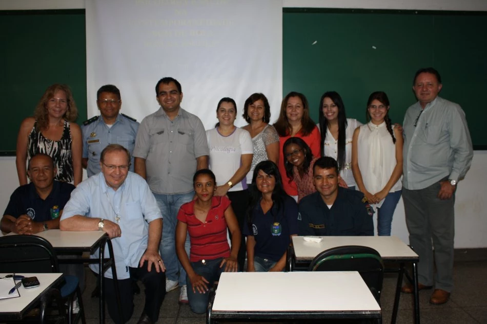 Os acadêmicos do último semestre do curso de Psicologia da Universidade Católica Dom Bosco apresentaram os resultados do trabalho desenvolvido no projeto “Bom de bola, bom na escola”, realizado pela Polícia Militar na Capital e no interior. Estiveram presentes no encontro o Reitor da UCDB, Pe. José Marinoni, o responsável pelo projeto, Major Pereira, e a coordenadora do curso de Psicologia, Eveli Vasconcelos.