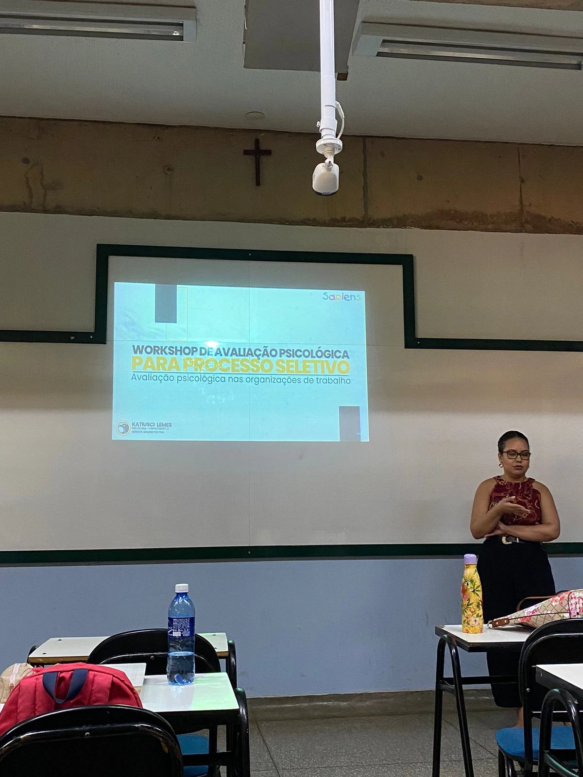 Acadêmicos do curso de Psicologia (matutino e noturno) da Universidade Católica Dom Bosco (UCDB) participaram na terça-feira (28) do workshop sobre modelos de recrutamento e seleção e avaliação mediadas por tecnologia, com a participação de três egressos como palestrantes. O evento faz parte das atividades da disciplina Psicologia Organizacional do Trabalho II, ministrada pela professora Eveli Vasconcelos.