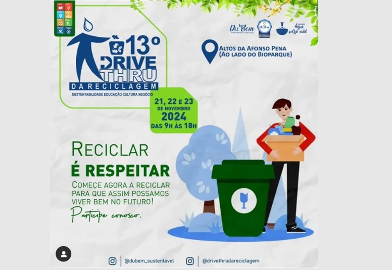 Acadêmicos do 2º semestre do curso de Publicidade e Propaganda da Universidade Católica Dom Bosco (UCDB) e extensionistas da Agência Mais Comunicação participam da divulgação da 13ª edição do Drive-thru da Reciclagem, que ocorre nos dias 21, 22 e 23 de novembro, das 9h às 18h, nos altos da Avenida Afonso Pena, ao lado do Bioparque Pantanal, em Campo Grande.