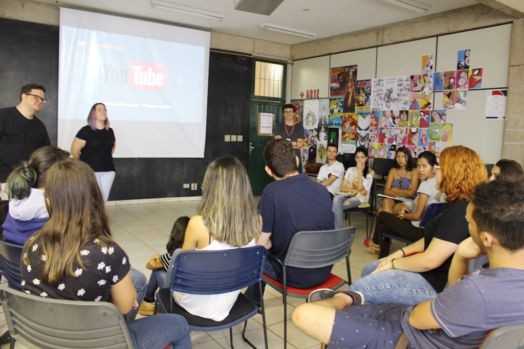 Na data, Denis Feliz e Beatriz Ferelli, que atuam na área de produção de vídeo da agência, compartilharam com os alunos as experiências que adquiriram no mercado de trabalho e também como funciona o dia a dia de um profissional. Passaram orientações e dicas para quem deseja seguir carreira de produtor ou diretor de vídeo.