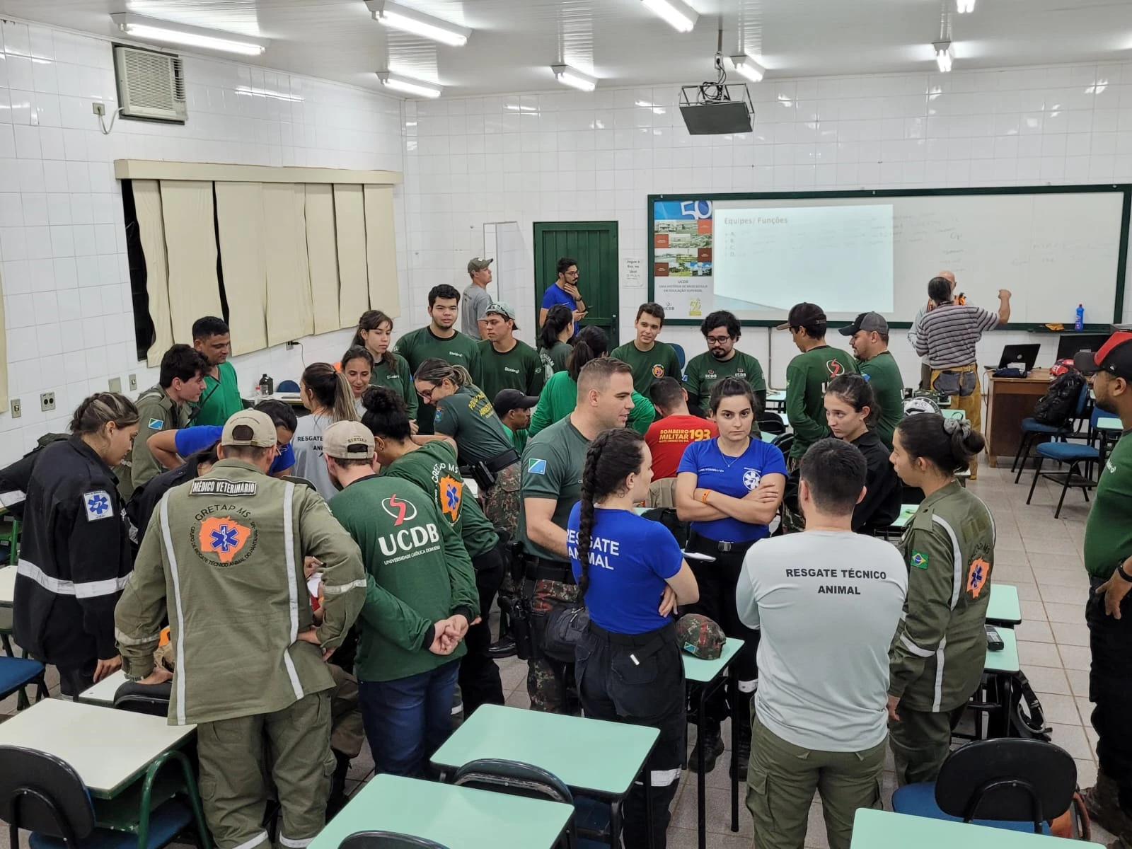 Além de acadêmicos da UCDB, estão presentes alunos da UniBH, de Belo Horizonte (MG), e da Uniso, de Sorocaba (SP), com participação do Corpo de Bombeiros, Defesa Civil e Conselho Regional de Medicina Veterinária (CRMS-MS).