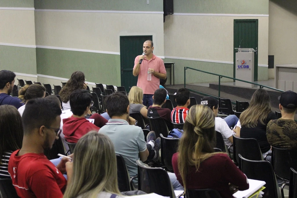 Acadêmicos dos cursos de Fisioterapia, Nutrição, Enfermagem e Farmácia da Universidade Católica Dom Bosco (UCDB) participaram na sexta-feira (3) da palestra Atenção multiprofissional de transgêneros pelo Sistema Único de Saúde (SUS). A atividade faz parte da disciplina Políticas Públicas de Saúde III, ministrada pelas professoras Karine Ferreira da Costa e Eliny Salazar.