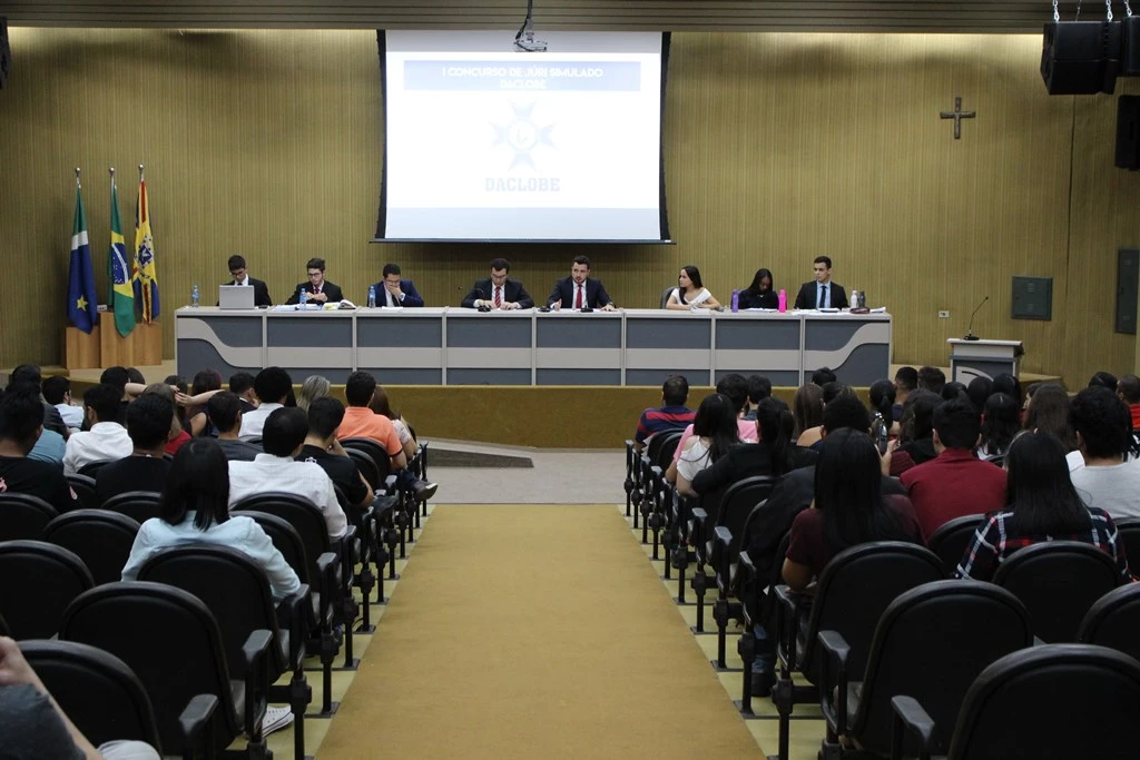 Acadêmicos do curso de Direito da Universidade Católica Dom Bosco (UCDB) participaram na noite de sexta-feira (31) do Tribunal de Argumentação de Acolhida dos Calouros, simultaneamente ao encerramento do I Concurso de Júri Simulado do Diretório Acadêmico Clóvis Bevilácqua Direito (Daclobe).