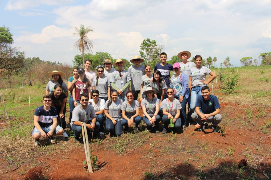 Acadêmicos do curso de Engenharia Sanitária e Ambiental que participam do projeto de extensão “Construindo Saberes de Engenharia”, da Universidade Católica Dom Bosco (UCDB), plantaram mais de 500 mudas de árvores em uma área de proteção ambiental que se encontra próxima a bacia hidrográfica do córrego Lageado.