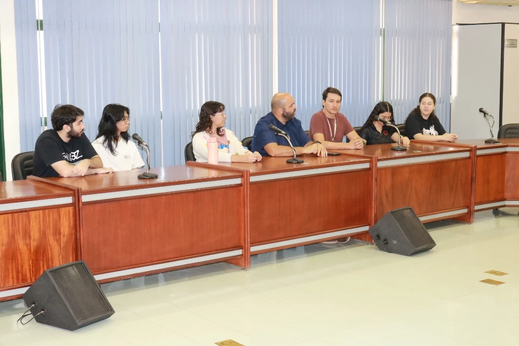 Na última terça-feira (11), integrantes do grupo de dança Ararazul estiveram no Gabinete da Reitoria para apresentar os troféus e medalhas recebidos no festival Onça Pintada. Acompanhados da coreógrafa Jéssica Bellincanta e do coordenador da área de Cultura e Arte, Roberto Figueiredo, os acadêmicos foram parabenizados pelas conquistas.