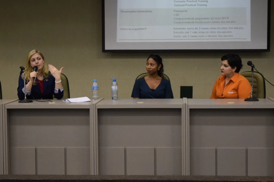 Com o intuito de falar sobre os procedimentos e solicitação do visto estudantil, profissional ou turista foi realizada na sexta-feira (20), na Universidade Católica Dom Bosco (UCDB), a palestra ‘Visto Americano – Dicas e Processos’, ministrada pelas representantes do consulado dos Estados Unidos da América (EUA) Karin Pereira e Sarah Belousov.