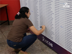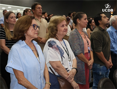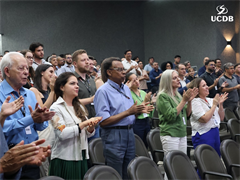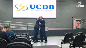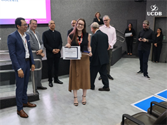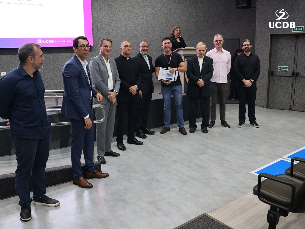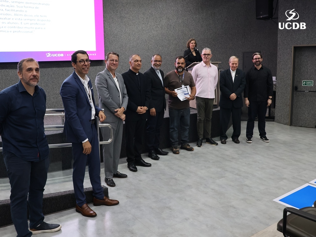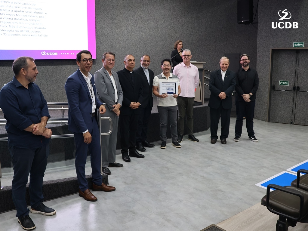 Dez professores foram homenageados pela UCDB, reconhecidos por sua dedicação à docência, com base nos dados da última pesquisa da Comissão Própria de Avaliação (CPA). O diretor Ricardo Almeida Pinto apresentou os dados principais da pesquisa e iniciou a entrada da 1ª edição da Premiação Dom de Mestre.