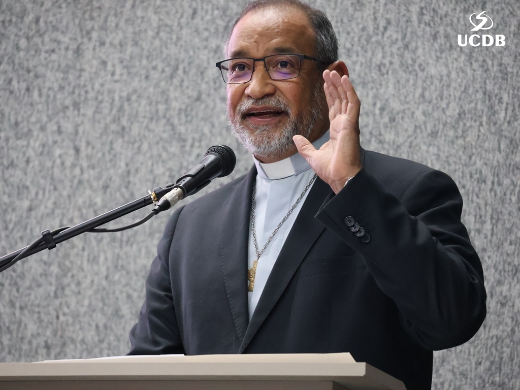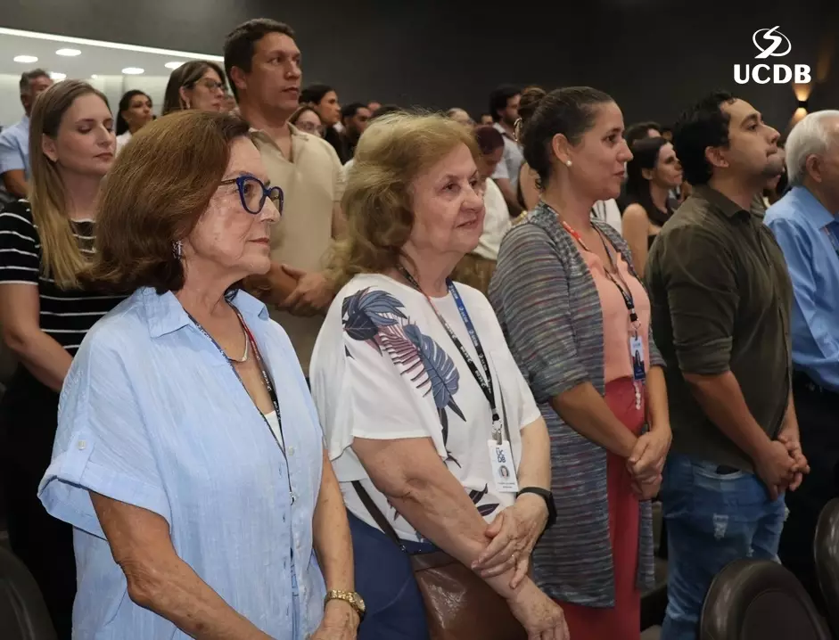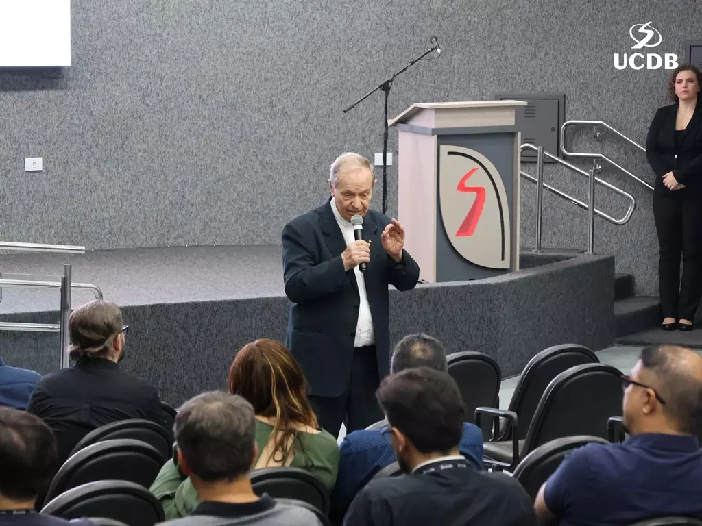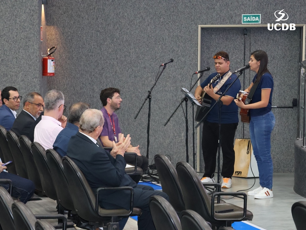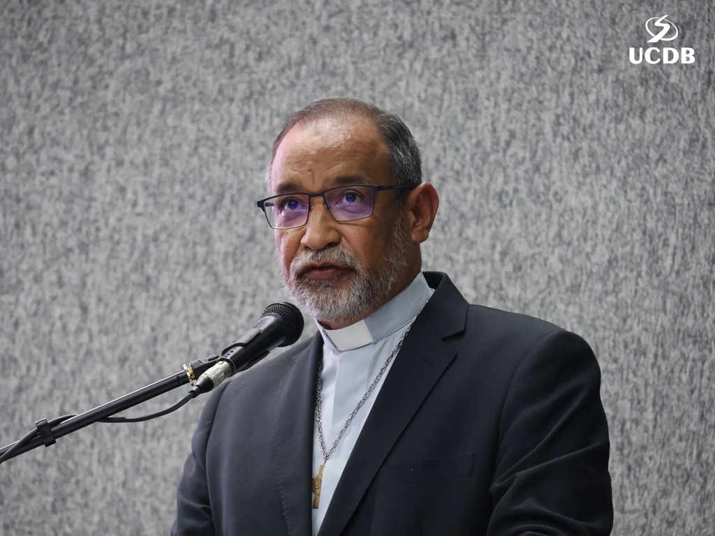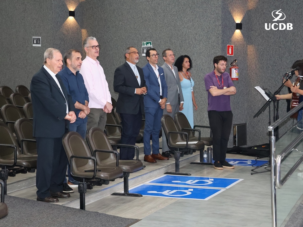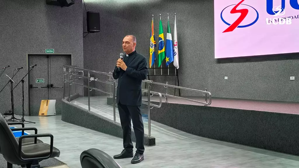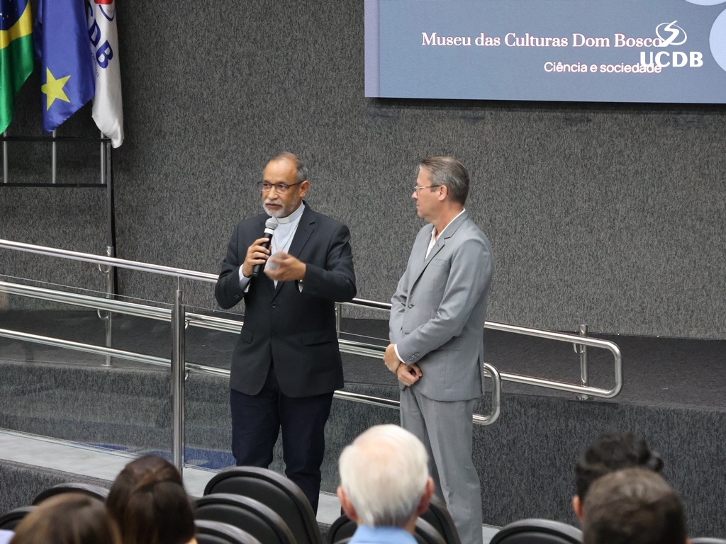 Pe. Elias também se apresentou, relatando um pouco de sua trajetória, com o nascimento, em Três Lagoas, a infância e juventude em Mato Grosso e a época da faculdade de Filosofia, no período de transição entre a Fucmt e a UCDB. “Retornar para a UCDB me faz viver um tempo de muitas recordações e recordações nos levam à gratidão. Lembro-me dos meus professores, cada um com seu jeito, mas todos marcaram minha vida. Foi nesse anfiteatro que colei grau. Vocês, professores, são educadores salesianos e eu aprendi que o salesiano é um educador-pastor, que guia, acolhe, repreende quando necessário. Que sua missão alcance o objetivo que vocês desejam. E reforço que a Pastoral é local de acolhida; a Pastoral tem o rosto da mãe, disponível a todos vocês. Que sejamos exigentes com ternura. Concluo relembrando a frase de Dom Bosco: Nossa vida é um presente de Deus para nós. O que fazemos, é o nosso presente para Ele”.